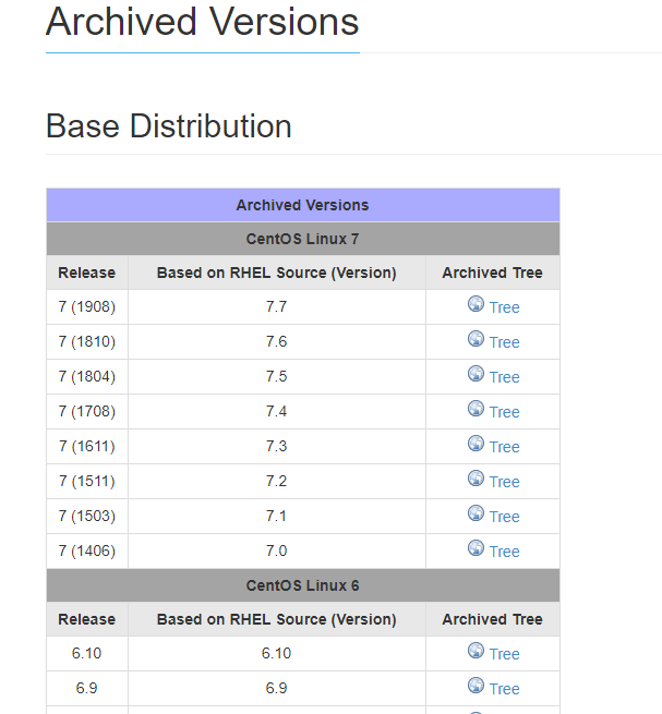 아래로 스크롤을 내리면 다음과 같이 이전 버전들의 Tree가 나옴.
